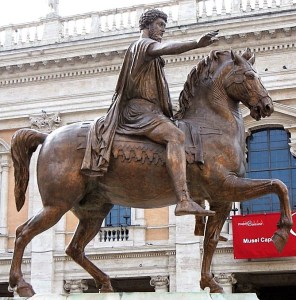 Den vacker ryttarstatyn föreställer en romersk kejsare Marcus Aurelius till häst och det stor mitt på Piazza del Campidoglio i Rom. Monumenten utfördes