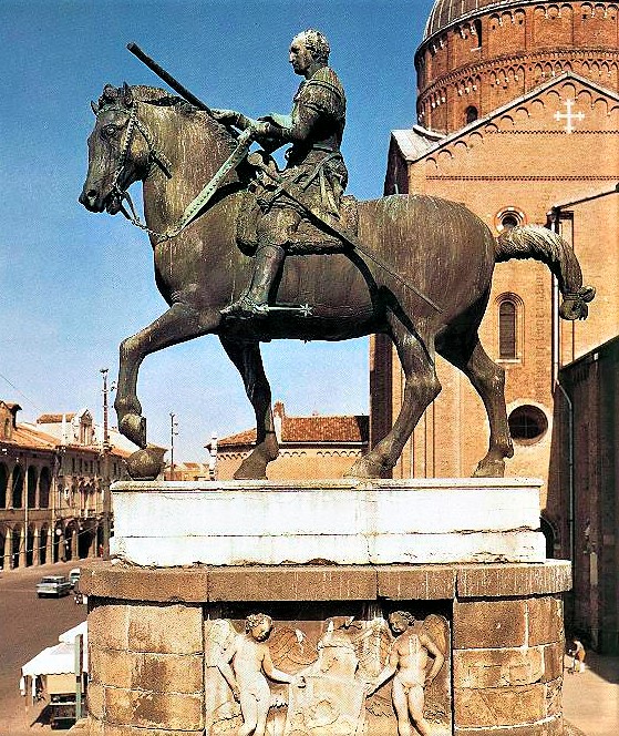 Vem är riddare? Kondottiären Erasmo da Narni (känd som Gattamelata) försvarade den venetianska republiken. Statyn stor i Padua på Piazza del Santo. Man kan fråga varför i Padua? Venedig erövrade den grannstad i 1405 och under närmaste 300 år förblev Padua venetiansk (1405-1797).