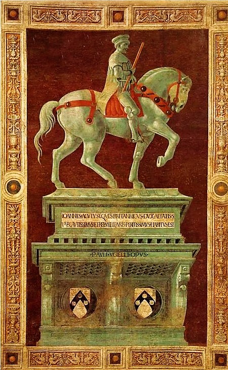 En intressant exempel på riddarstatyn är en freskomålning skapades av Paolo Uccello (1397-1475). Konstnären fick uppdrag från den florentinska domkyrkan. Väggmålning avbildar en engelsk legosoldat, sir John Hawkwood, som kämpade på den italienska sidan. Ryttarstatyn är unik exempel på perspektiv och detta enorm storleken (820 x 515 cm) hade en propaganda ändamål. Det handlar om representativa fördelar med att vara i tjänsten hos Republiken Florens!