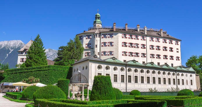 Slottet Ambras, nära Innsbruck är vacker belägen 628 m.ö.h. på en pittoreskt klippa.