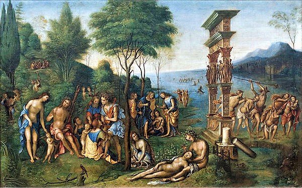 • Lorenzo Costa (1460-1535) efterträdde Mantegna som målare vid hovet i Mantua och utformade ”Allegori av Isabellas d`Estees kröning” och ”Regeringstid av Comus” två mytologiska målningar baserade på Mantegnas teckningar.
