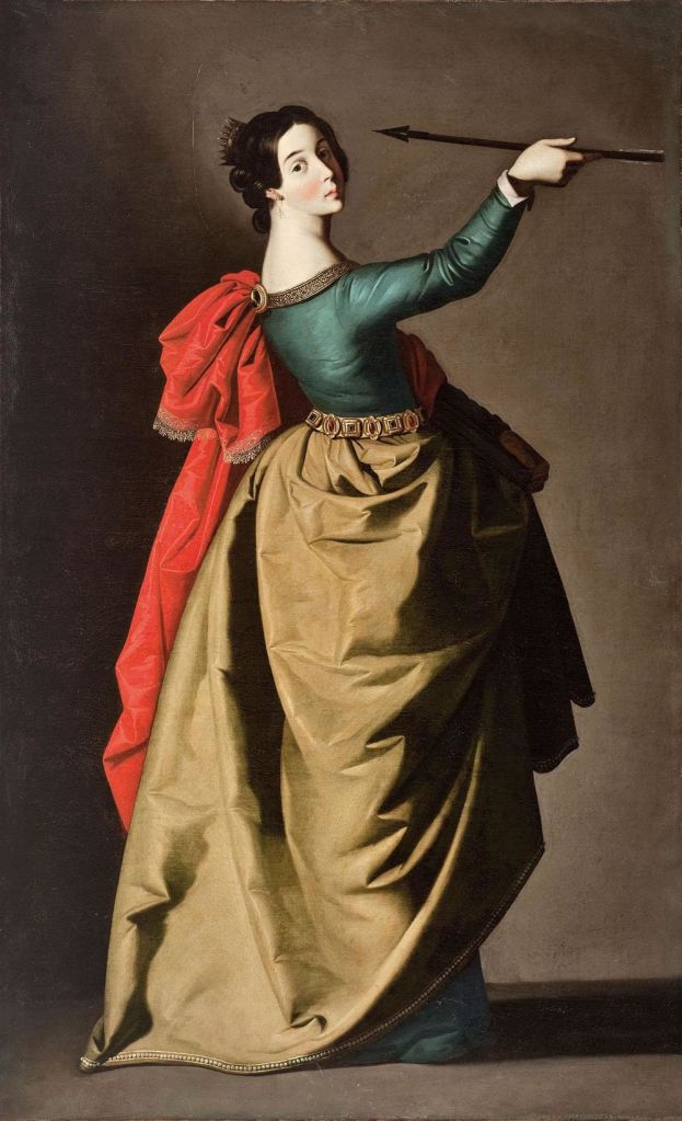 • 1636 en stor serie bilder av heliga kvinnor. Zurbaran skapade de för olika religiösa institutioner. Han framställer vanligtvis unga och mycket eleganta kvinnliga karaktärer, fyllda med skönhet och fred, utan tecken på smärta eller lidande. Målningarna kritiserades som för mycket pompösa och utsmyckade. De heliga såg ut som vanliga andalusiska damer! Zurbarán försvarade sig mot kritik och argumenterade att de vackra klänningarna gav karaktärernas realism och stärkte de troendes tillbedjan!