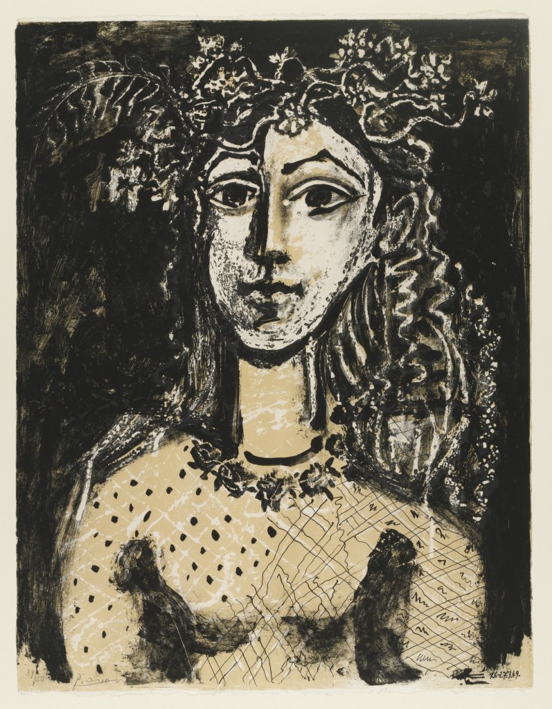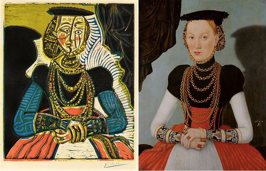 1949 utförde Picasso ”En ung flicka” i litografi efter Cranachs brudporträtt från 1526 av den 14-åriga saxonska prinsessan Sibylla av Cleve. Porträtten framställer fortfarande en ung kvinna men är överdriven i det ornamentala detaljer.