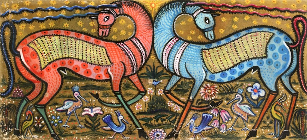 Anitas fascinationer flyttade till den antika världen – Europa, Afrika och Asien – och hon engagerade sig intensivt i deras bildtraditioner. Runt 1930 ledde hennes intressen till ett ovanligt arbete. I tre målningar slog hon samman mytiska djur, blommor och landskap till en fantastisk värld.