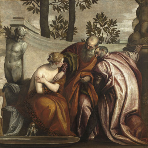 Paolo Veronese (1528-88) var tillsammans med Tintoretto senrenässansens ledande konstnär. Motiv om Susanna användes ofta på den tiden eftersom det gjorde det möjligt att skildra de ämnen som föredrogs av kunderna- den kvinnliga nakna kroppen – med hjälp av en biblisk episod. Konfrontationen mellan Susanna och de äldste är det mest psykologiskt intressanta ögonblicket i hela scenen.