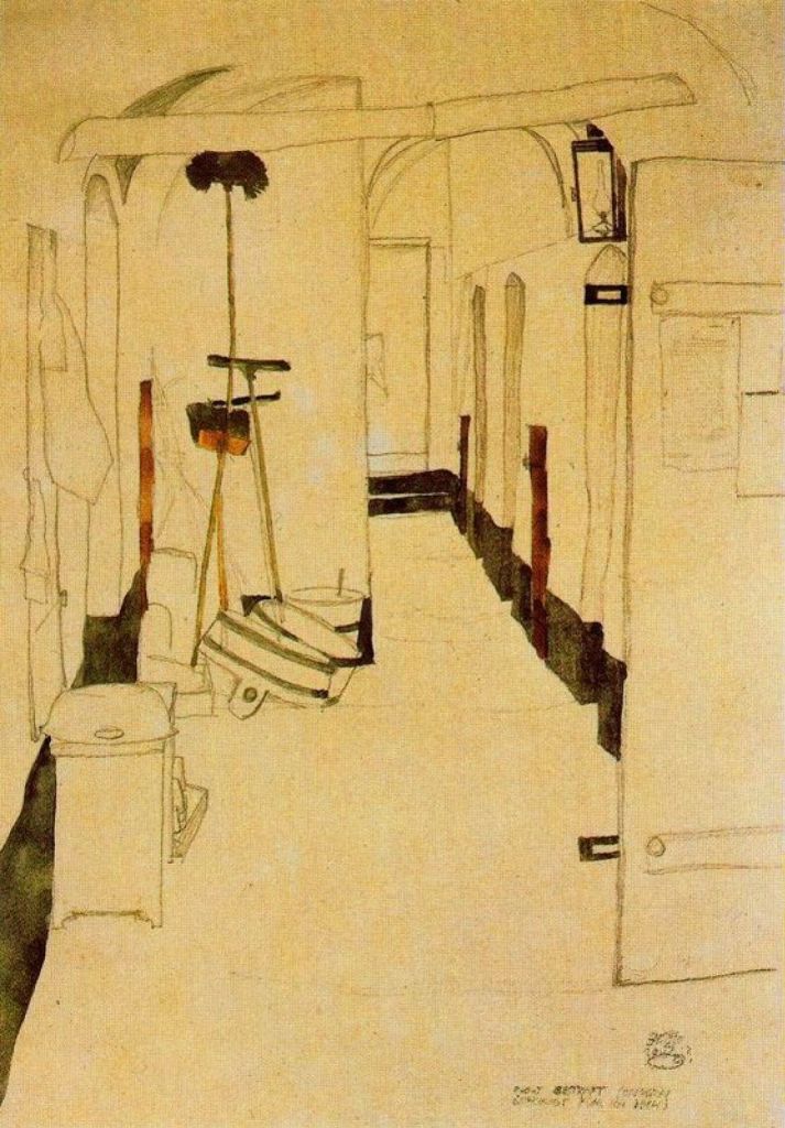 Redan i april 1912 arresterades Schiele för förförelse av en minderårig tjej. När polisen kom till hans ateljé fann de över hundra teckningar som de ansåg vara pornografiska. I resultaten satt Schiele en månad i häktet. Under denna tid stödde Wally konstnären genom att regelbundet förse honom med mat och konstförnödenheter så att han kunde fortsätta skapa.