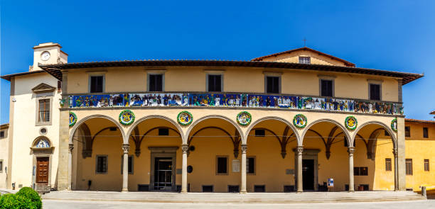 En känd florentinsk arkitekt Michele di Bartolomeo (1456-62) fick i uppdrag att modernisera Ospedale. Tack vare honom fick byggnaden nästan renässansstil, loggian var dekorerad med en keramisk glasyr (en s.k. majolika). En sådan insats utfördes av Luca della Robbia (1400-82) skulptör och keramiker från Florens. Luca var framför allt känd för sin sångläktare (cantoria) och dörrarna till sakristian i den florentinska katedralen Santa Maria del Fiore.