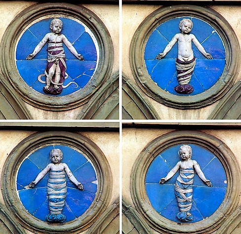 Ospedale degli Innocenti blev en av första byggnad i Florens i renässanska stilen. Den kända arkiyekt Filippo Brunelleschi arbetade med projekt mellan 1419-27. Några år senare kom Andrea della Robbia (Luccas brorson) att utforma keramiska tondo-porträtter av lindebarn som pryder fasaden. Utsökt arbete!