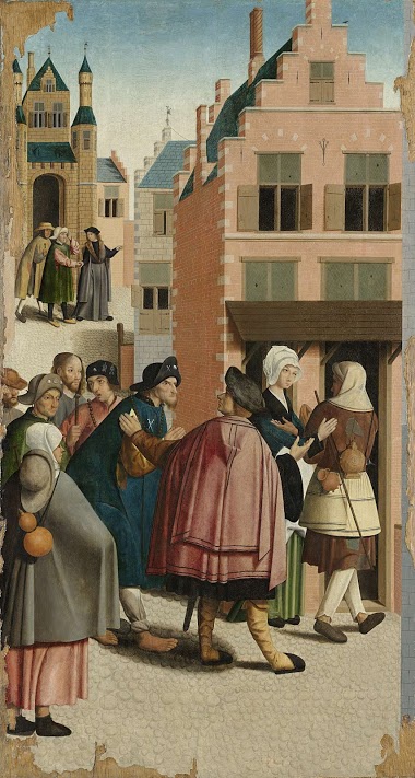 Målningarna hette också ”Sju barmhärtiga verk”. Pittoreska och realistiska folkscener framställer alla sju godhjärtade verk. Det är värt att kolla lite närmare på hur man behandlade fattiga i Alkmaar.