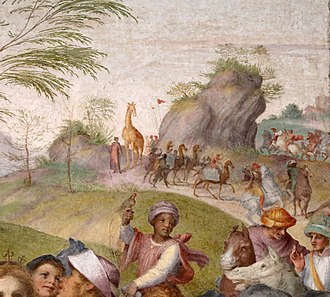 ”Kejsarens skatt”(ca.1520) fresken som dekorerar Medici villan i Poggio a Caiano avslutades av Alessandro Allori (ärlig talat förstördes av honom i 1582). Scenen utspelar på trappan till en majestätisk klassisk byggnad. Här ser vi en lagerkransad Julius Caesar som tar emot ambassadörer. De förde många gåvor, inklusive den berömda Medici-giraffen.