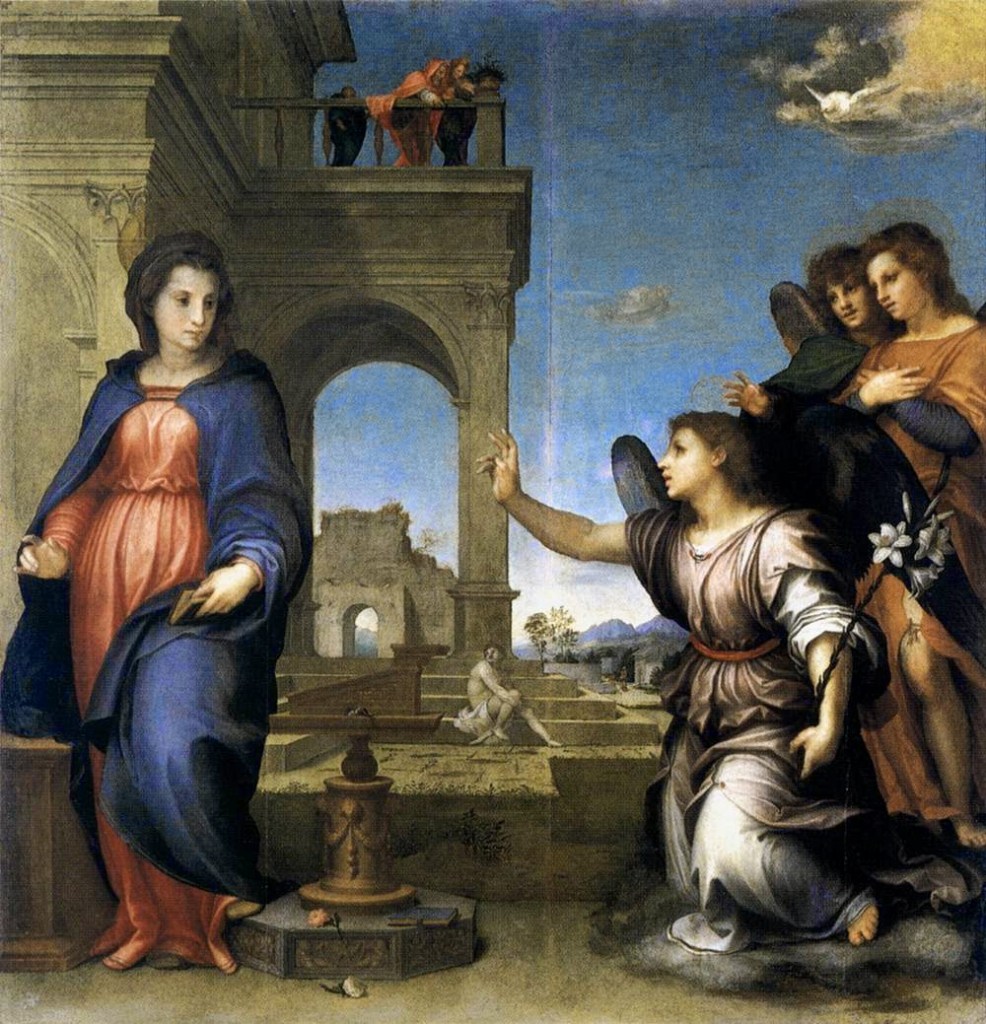 ”Bebådelsen” (1512) målades för den augustinska kyrkan San Gallo i Florens. Tavlan visar konstnärens fascination för Michelangelo, Santi och teknik-sfumato. Maria dominerar på vänstersidan och Gabriel med änglar till höger. Budbärarna går på molnet och deras ansikten är fulla av känslor. Bakgrunden för scenen är ruiner av en forntida byggnad.