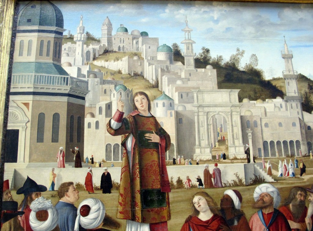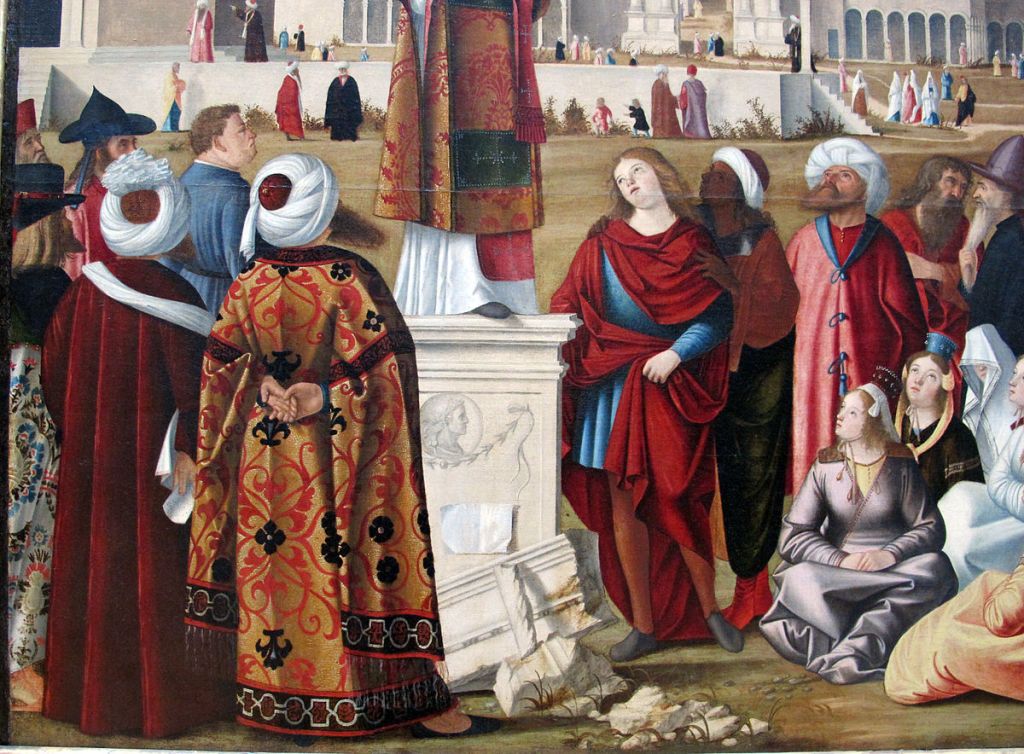 Mästare från Alkmaar (Nederländerna) verkade mellan 1490-1515. Hans smeknamn härstammar från en serie målningar som gjorde honom till medlem i Den Helige Andes vid Sint Laurenskerk. Märkte ni att även den protestantiska kyrkan var tillägnad Sankt Laurentius?