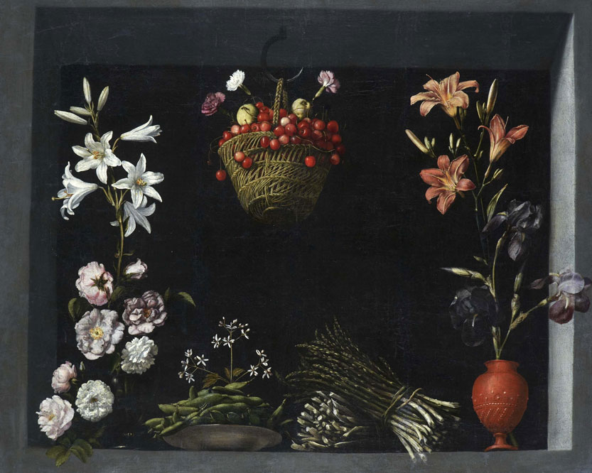 ”Stilleben med vildfågel, grönsaker och frukt” (1602) 68 x 88,2 cm Prado, Madrid”Stilleben med frukter” (1602), oil on canvas, 68 x 84,4 cm The Fine Arts Gallery, San Diego ”Stilleben med blommor, grönsaker och en korg med körsbär” (ca.1600 )olja på duk, 89 x 109 cm, fransk privat samling